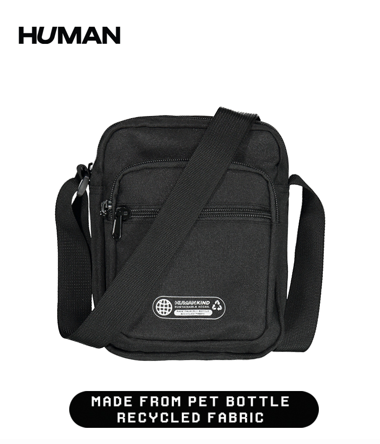 • 16cm X 7cm X 20cm • 1 MAIN COMPARTMENT • 2 FRONT ZIP POCKET • 1 INSIDE ZIP POCKET RPET • FABRIC: (POLYESTER)